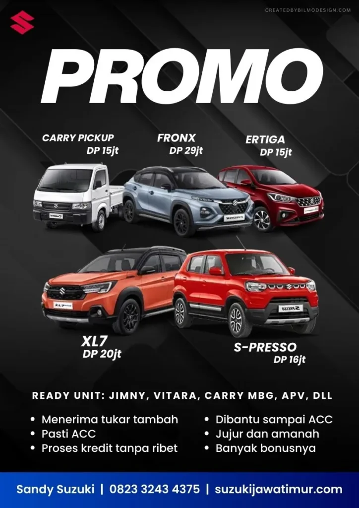 Yang paling di nantikan dan ditunggu-tunggu adalah promo, diskon dan program menarik dari kami dan perusahaan SUZUKI, yang tentunya akan sangat menguntungkan anda.